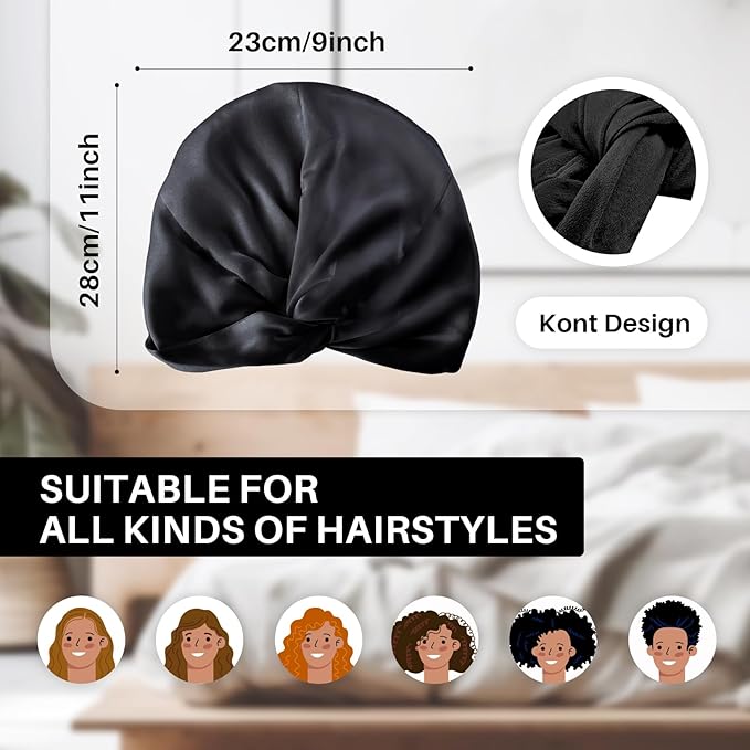 - 【SLEEPING HAIR CARE】A Silk Sleep Cap can help you maintain your hair style when you sleep, keep the hair style, reduce frizz from breakage, and reduce friction by 45%.Silk Bonnet are a perfect choice for natural hair, long hair, thick hair, braids, weaves, curly hair, updos, rollers, hair clamps, split ends, and so on. Silk Hair Bonnet is suitable for a head circumference of 21"~23".