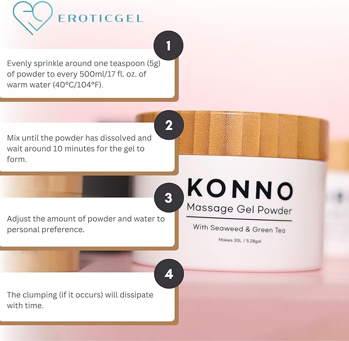 Japanese Nuru Massage Gel Powder 200g | Formulated with Natural Seaweed & Green Tea | Made in Japan | Paraben, & Glycerine Free | Fragrance-Free | Makes 5.28 gal/ 20L | Vegan | Konno