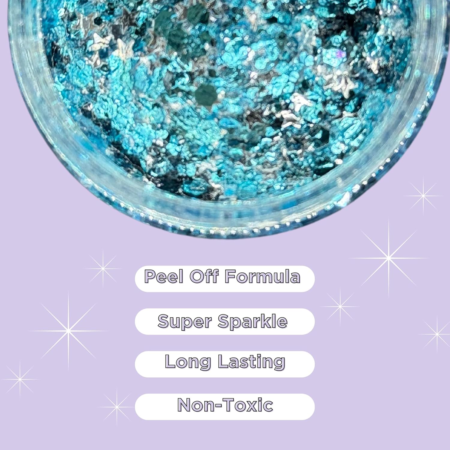 - *Easy Application* Stir and Apply the glitter directly to your face with the included applicator. No more mess, our applicator is designed to fit in the glitter container to stir and apply directly to your face. No additional glue, glitter or tools needed, simply apply, dry and hit zero.