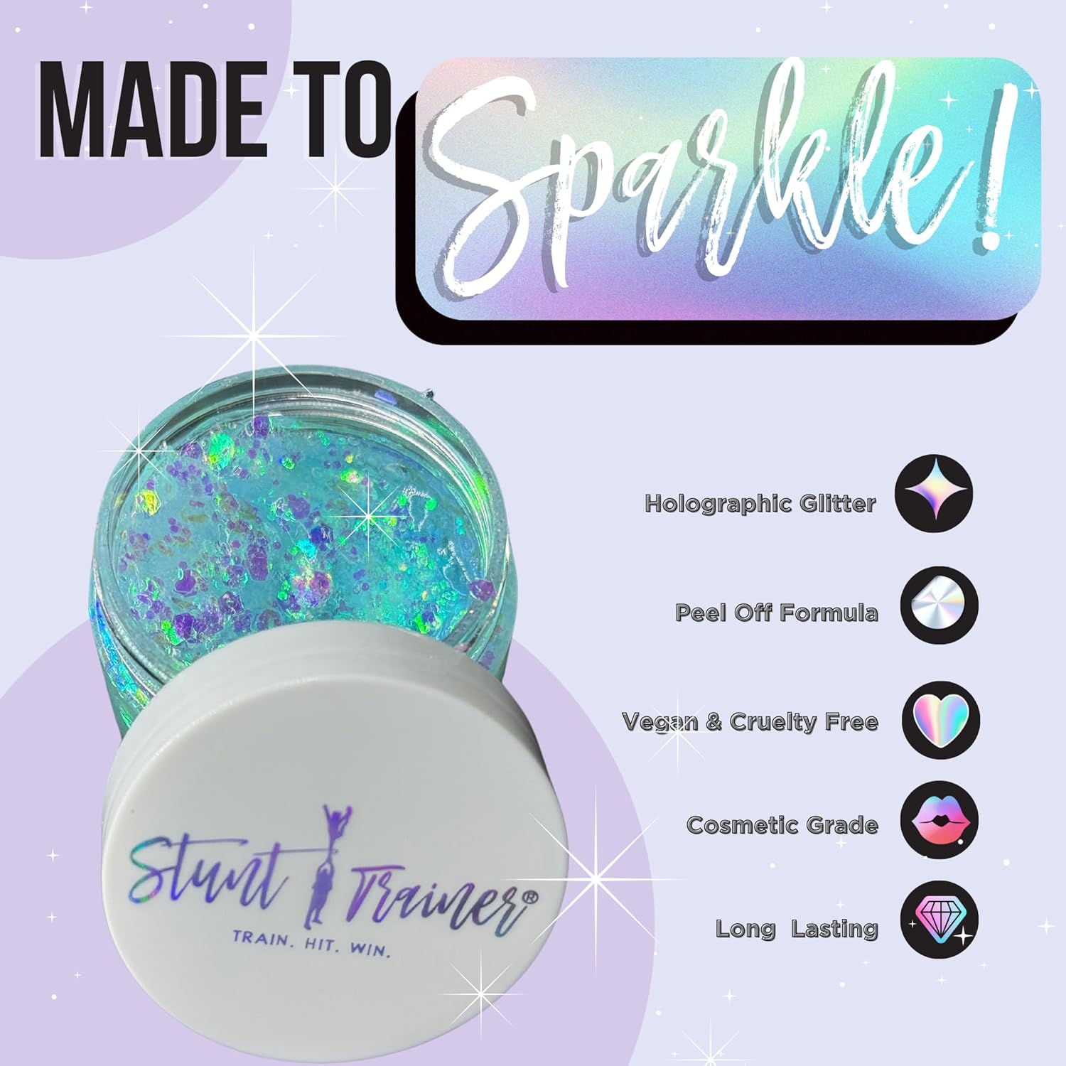 Stunt Trainer Cheer Glitter Face Body Makeup Peel Off Gel Chunky Holographic 15 Colors 1.6oz Vegan Cruelty Free Nontoxic Cheerleader Cheerleading Makeup
