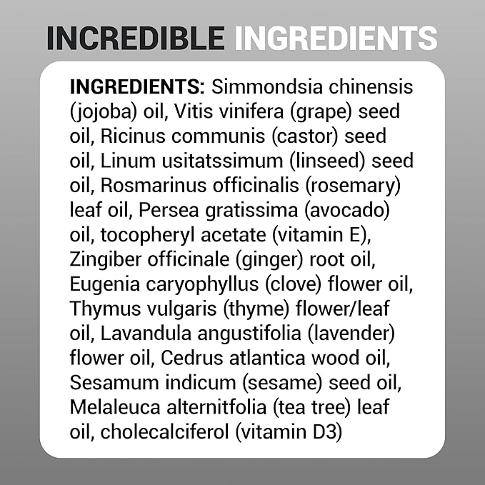 - Premium Plant Oils: Infused with 13 powerful essential plant oils and 2 essential vitamins — D3 and E. Includes popular oils like castor oil, rosemary oil, avocado oil, jojoba oil, and more.