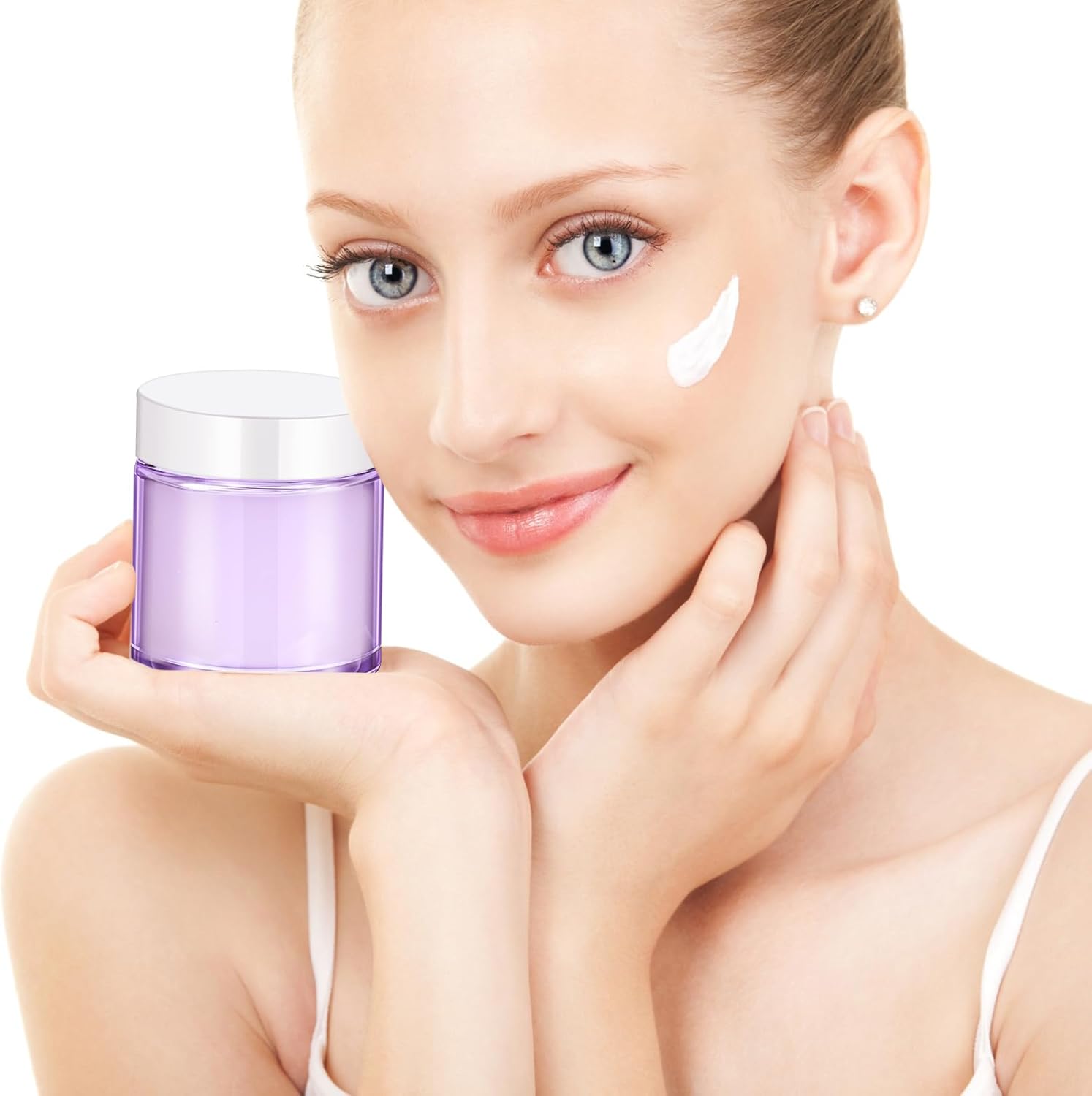 Norme 24 Pcs 4 oz Glass Jars with Lids Leakproof Round Airtight Empty Cosmetic Jars with Inner Liners Lid for Storing Lotions Powder Ointments Candle Making Tins (Light Purple)