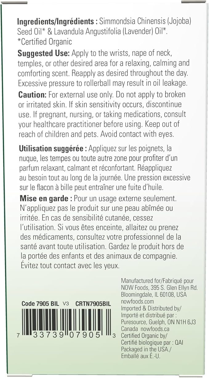 NOW Essential Oils, Lavender Roll-On, Certified Organic, Calming Blend, Steam Distilled, Topical Aromatherapy, 10-mL (Pack of 2)