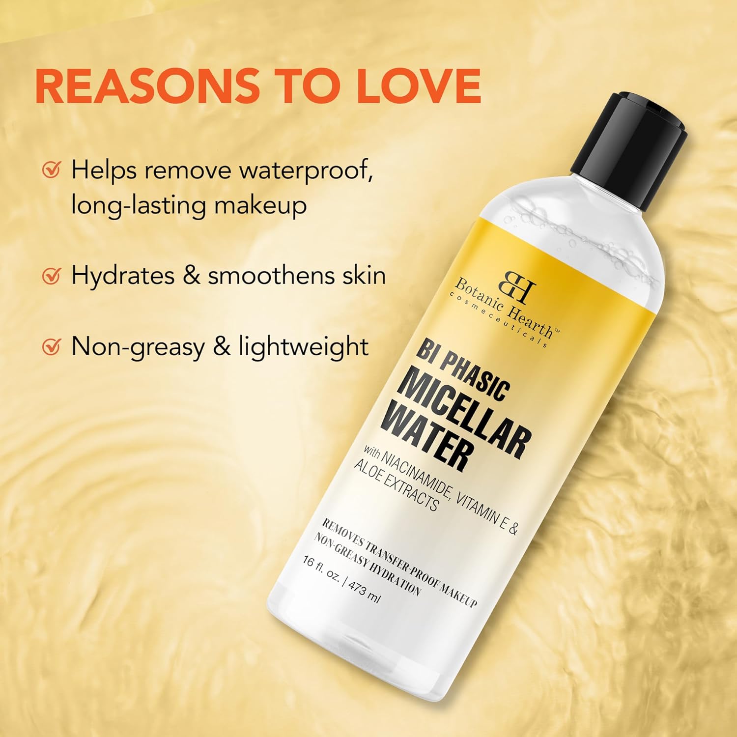 - Helps Remove Stubborn Makeup: Botanic Hearth Bi Phasic Micellar Water waterproof makeup remover helps effectively remove waterproof, transfer-proof and long-wear makeup to leave behind clean, refreshed skin