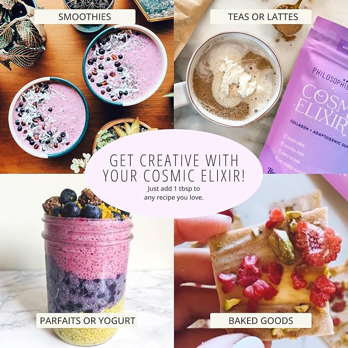 Philosophie Cosmic Elixir Collagen Superfood Blend with Adaptogens – Organic & Unsweetened Powder for Gut Health, Hormone Balance, Joint Support & Skin Vitality – 32 Servings