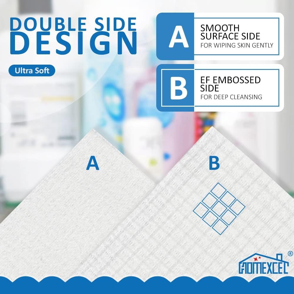 - Healthier Personal Care: Compared with ordinary towels,disposable face towels are healthier. HOMEXCEL cleansing towels are designed with a two-sided texture, one side is smooth surface for wiping skin gently, and the other side is pel texture surface to increase friction for deep cleans