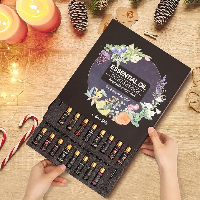 Essential Oil Set 64 Pack -Aromatherapy Essential Oils Kit-Fragrance Oils Perfect for Diffuser, Humidifier, Massage,Soap, Skin & Hair Care, Candle Scented Oil (0.17oz)