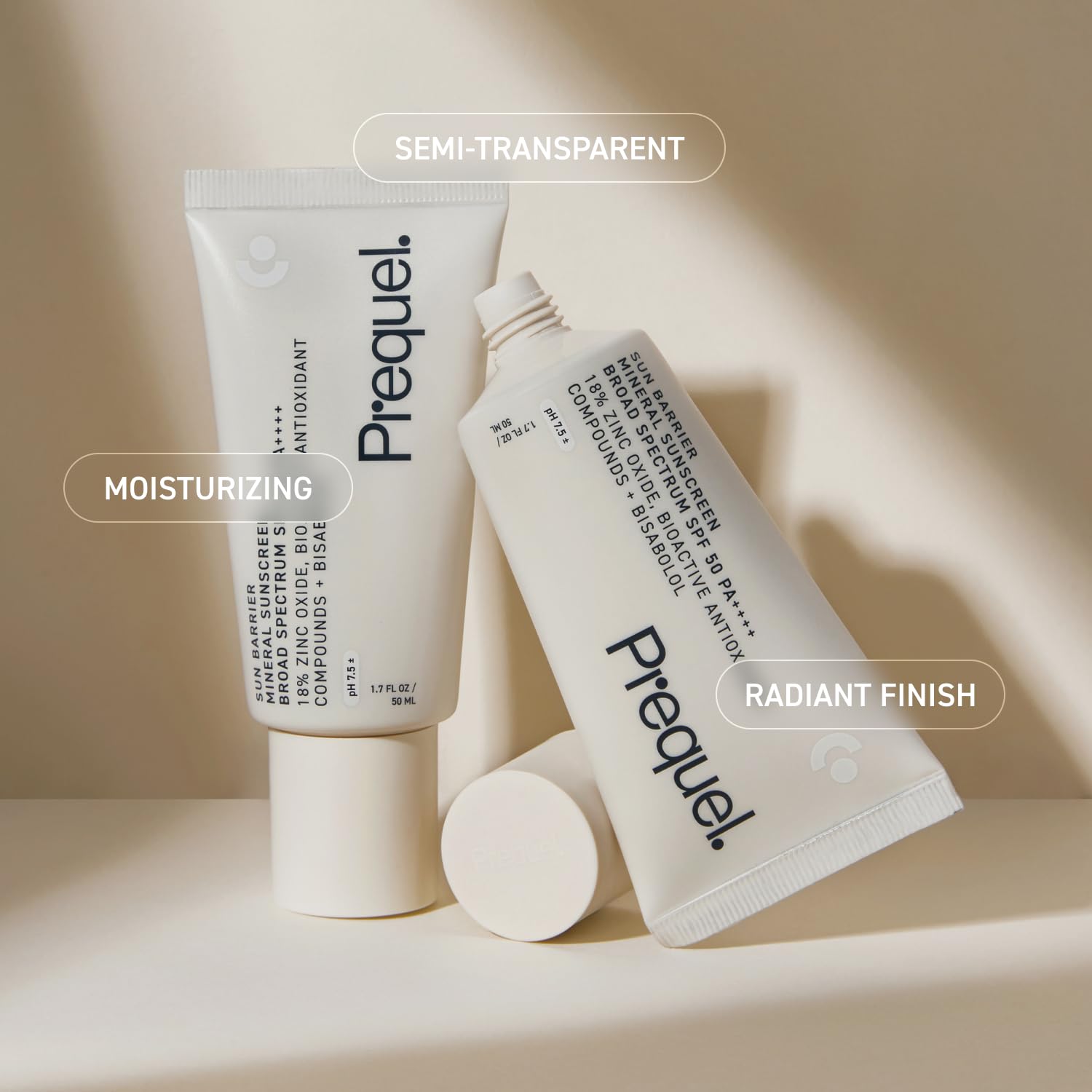 Prequel Skin Sun Barrier Mineral Sunscreen SPF 50. PA++++ Broad Spectrum Zinc Oxide Sunblock with Semi-Transparent Lightweight Texture. Moisturizing UV Defense for Face. Travel Size, 1.7oz