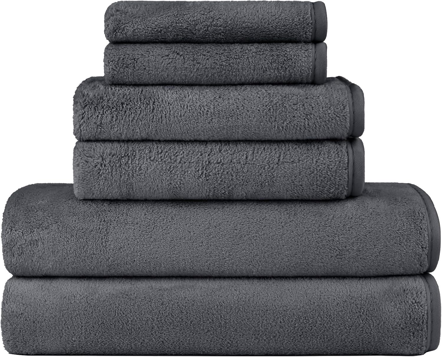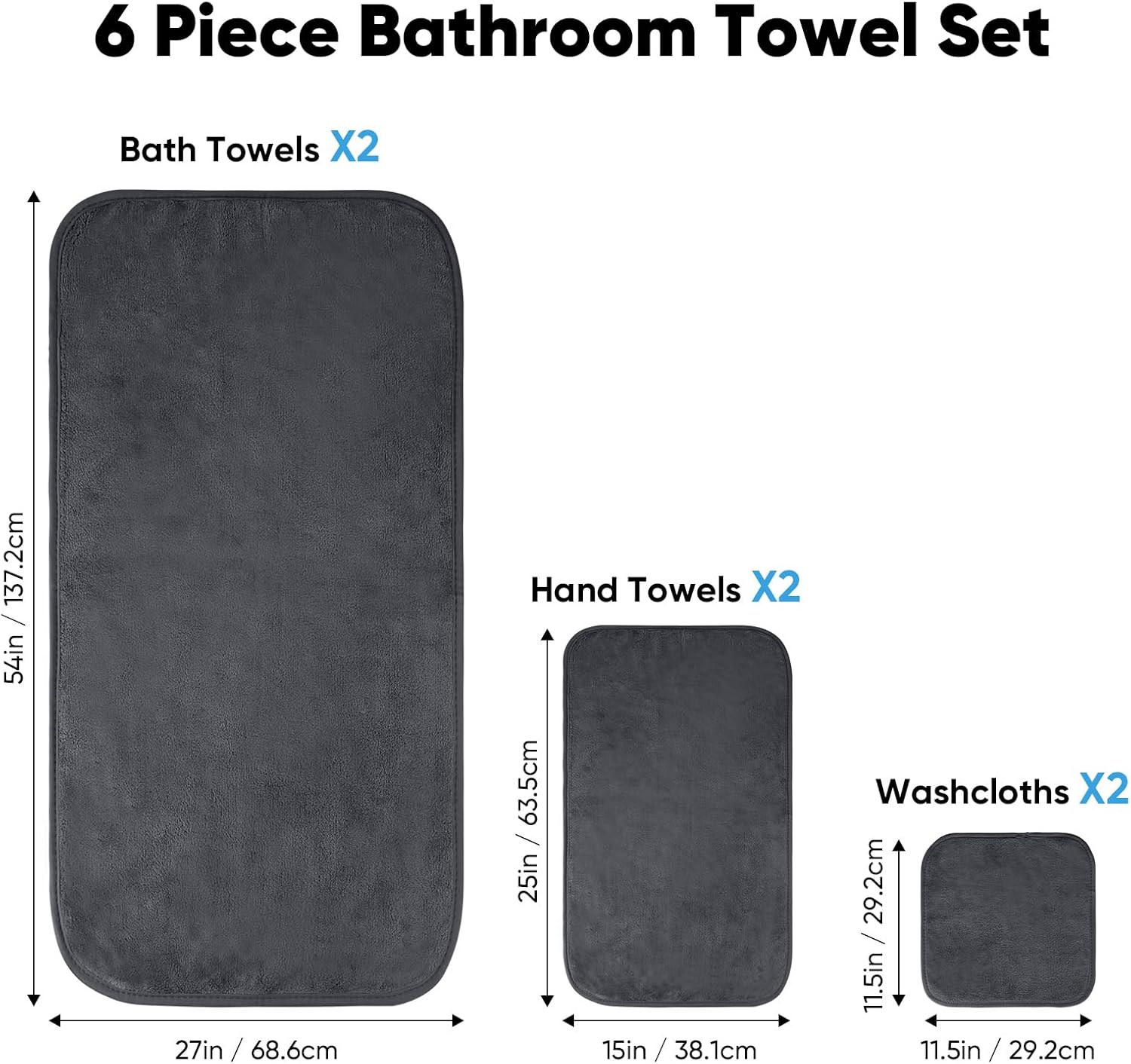 Orighty 6-Piece Towel Set - Soft & Lightweight - 2 Bath Towels, 2 Hand Towels, and 2 Wash Cloths - Absorbent & Quick Drying Microfiber Towel for Multipurpose, Bathroom, Gym, Sport, Yoga, Travel-Grey