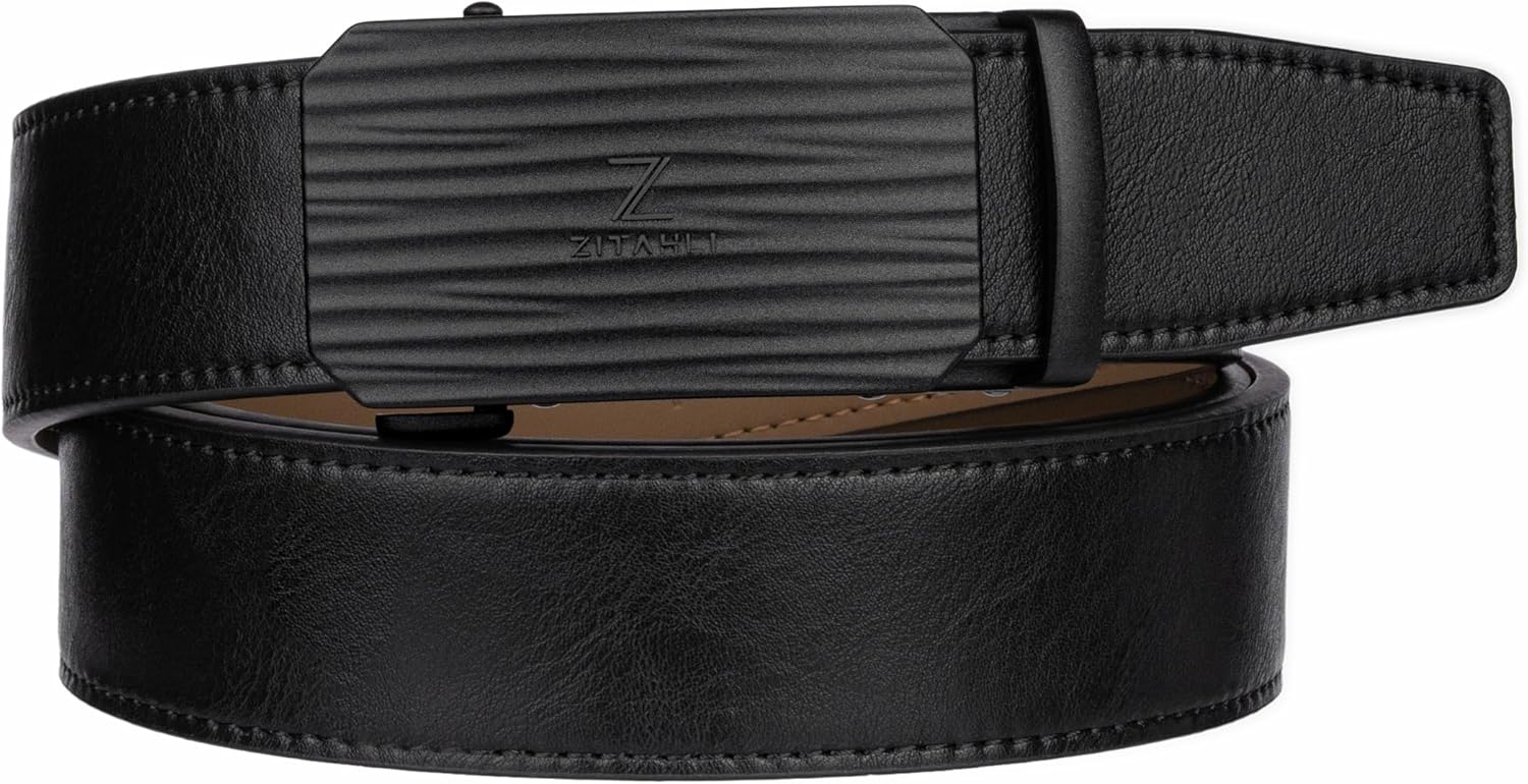 Zitahli Belt Men, Ratchet Belt Dress with 1 3/8" Premium Leather,Slide Belt with Easier Adjustable Automatic Buckle