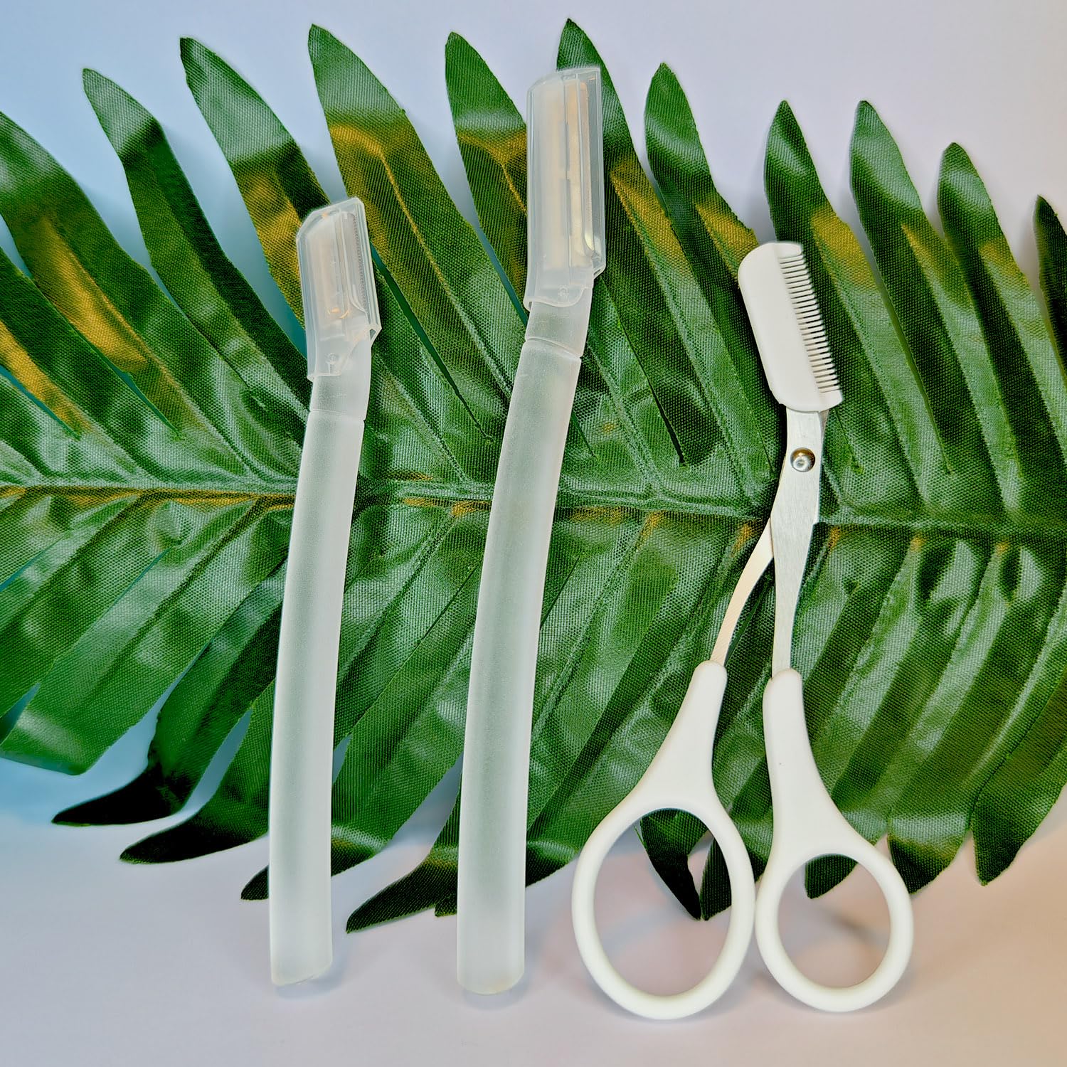 Eyebrow Razors Sets, 2PCS Razor with Protective Cover, 1PCS Scissor, Facial Hairs Peach Fuzz Removal, Face Shavers (Clear)