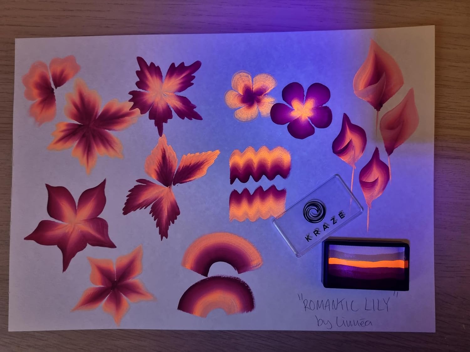Kraze FX Dome Stroke - Romantic Lily by Linnea (25 gm), Professional 1-Stroke Split Cake, Hypoallergenic, Non-Toxic, Water Activated Face & Body Painting Makeup Supplies for Kids Safe Adults