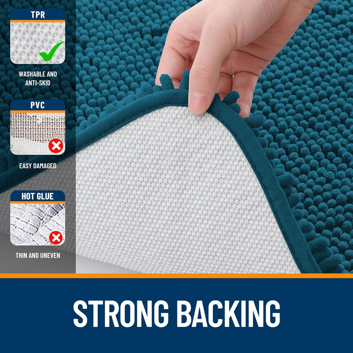 OLANLY Bathroom Rugs 30x20, Extra Soft Absorbent Chenille Bath Rugs, Rubber Backing Quick Dry, Machine Washable Bath Mats for Bathroom Floor, Tub and Shower, Home Decor Accessories, Peacock Blue