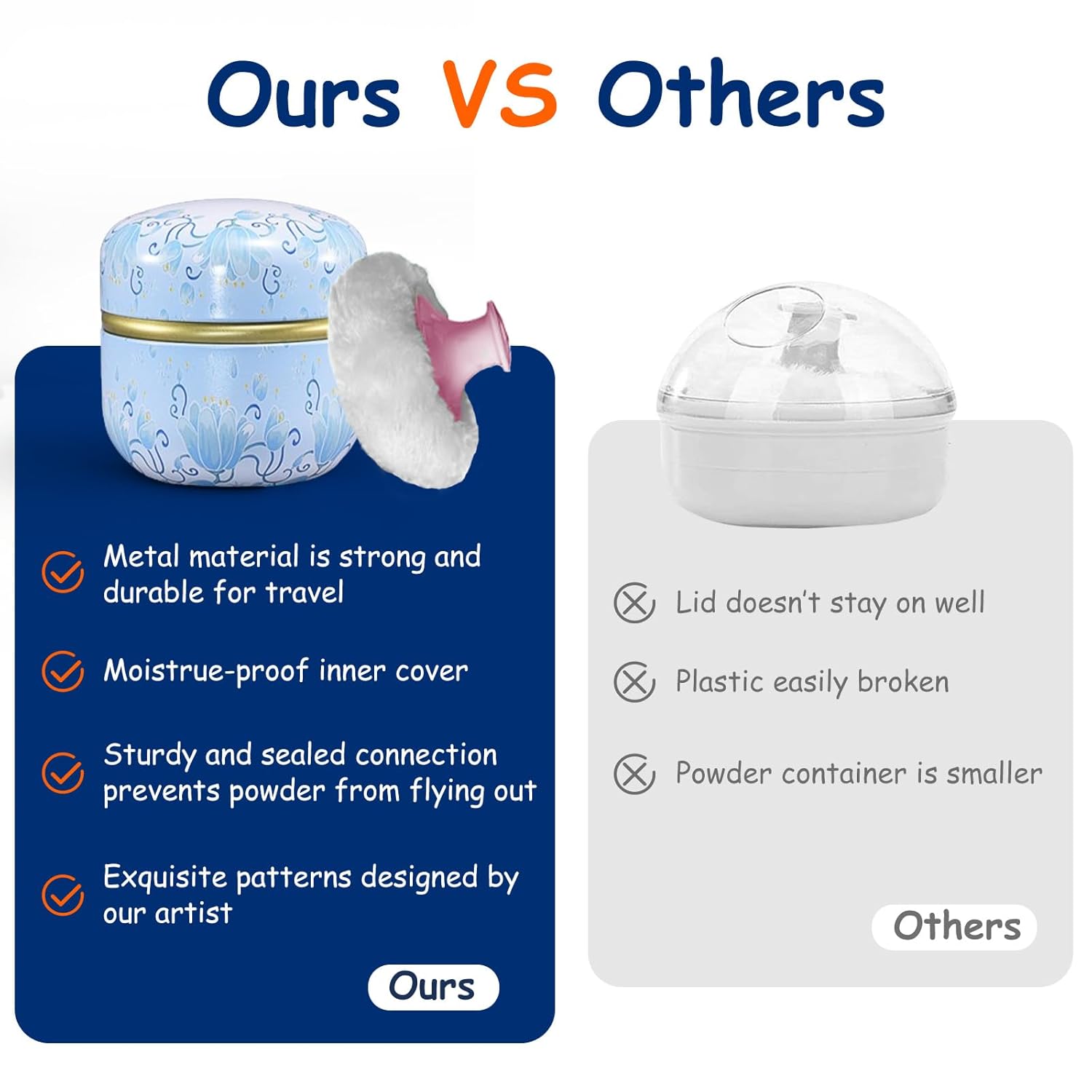 - GORGEOUS POWDER BOX: our powder case is made of tinplate, not easy to break and fade after being dropped, also can be used for a long time. the surface of the powder container has exquisite patterns designed by our artist, bring visual enjoyment.