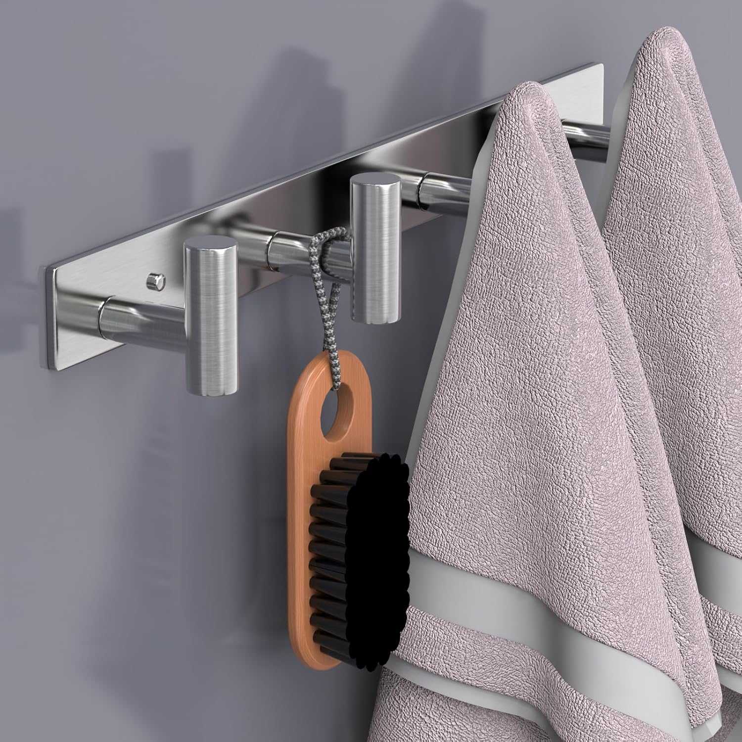 HUFEEOH 2 Pack Coat Rack Wall Mount, Stainless Steel T Shaped 4 Hooks Coat Hooks for Bathroom, Heavy Duty Wall Hooks Towel Hooks for Hanging, Silver Towel Rack Purse Hanger for Mudroom Entryway