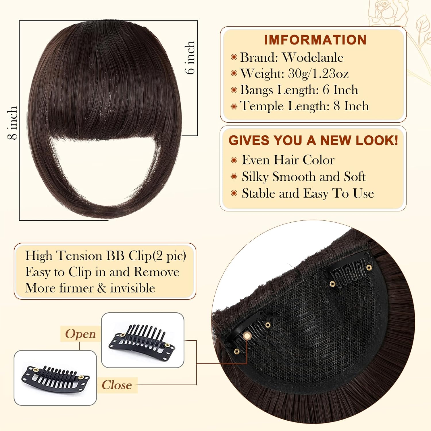 - Clip-in Bangs Design: Bangs Clip-in Hair Extensions.Clip-in design makes it easier to wear,change a new hairstyle in seconds,making you look more attractive.Two Clips are invisible and undetectable even on your thin front hairline.