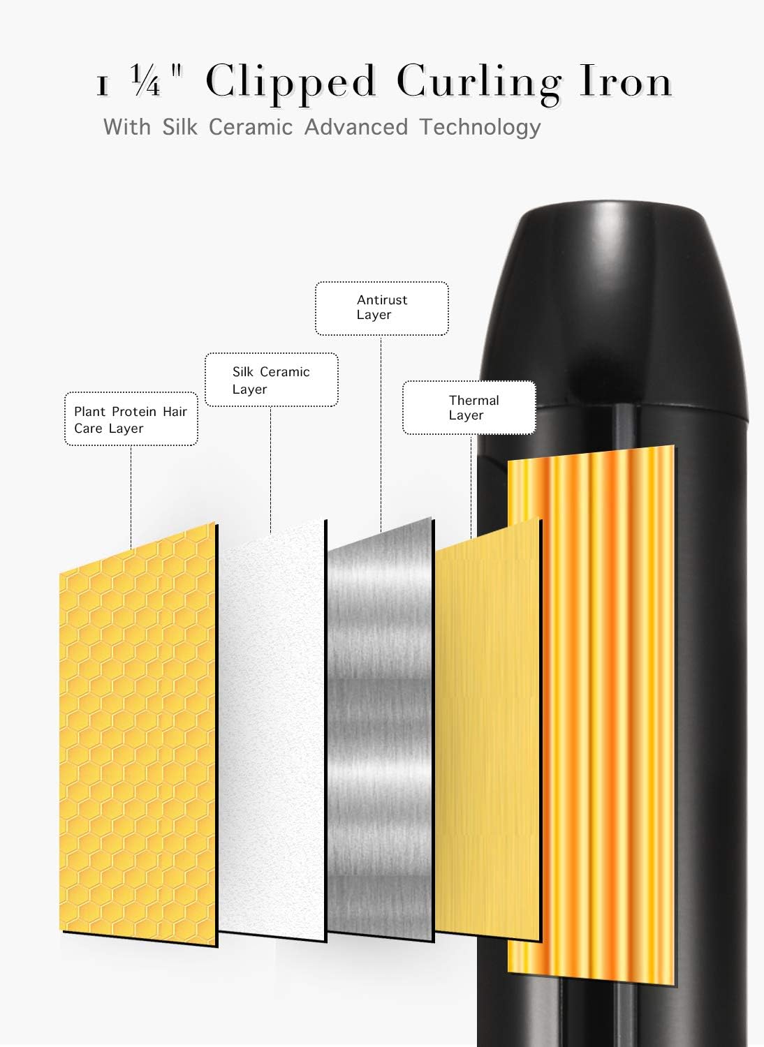 - [Extra Long Ceramic Barrel Curling Iron] - Lanvier 1 1/4 inch curling iron with clamp has 8.5 inch long barrel, which is perfect for long and thick hair to create perfect beautiful relaxed curls.