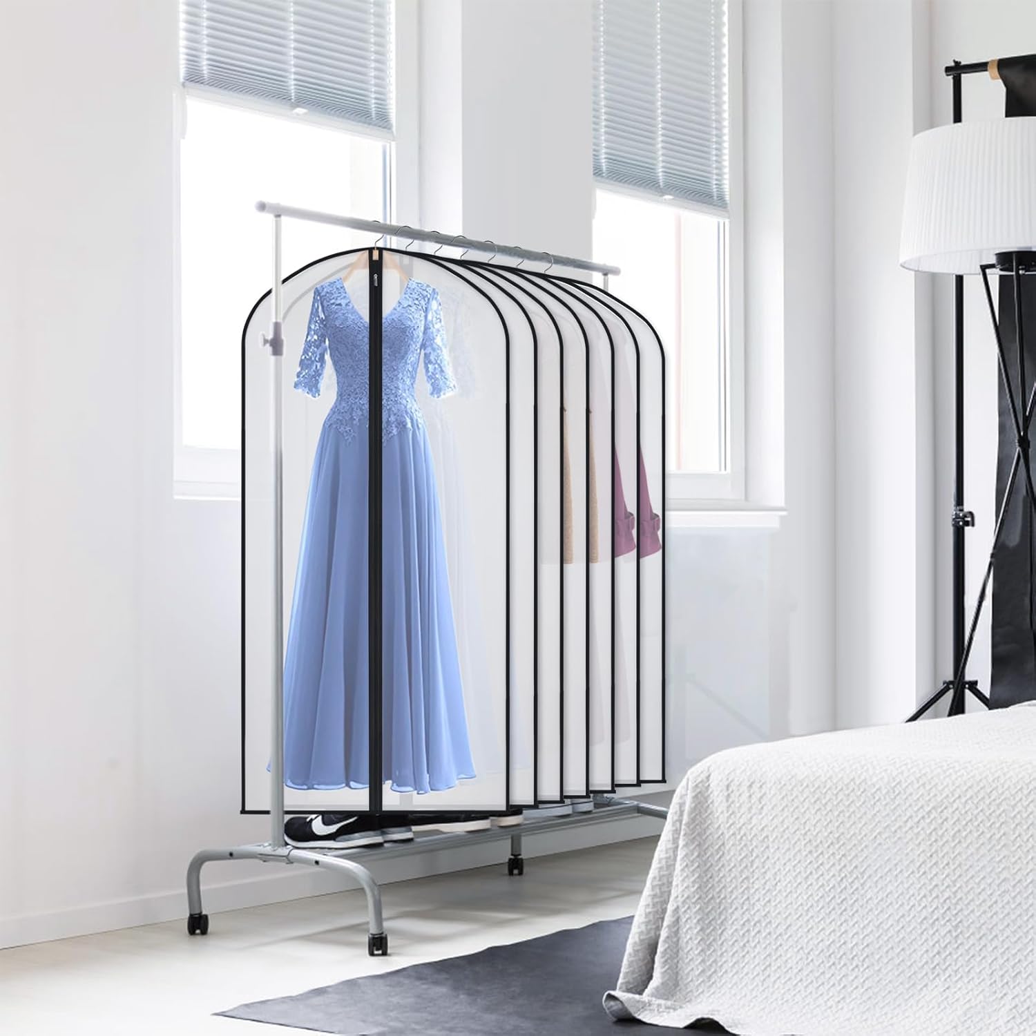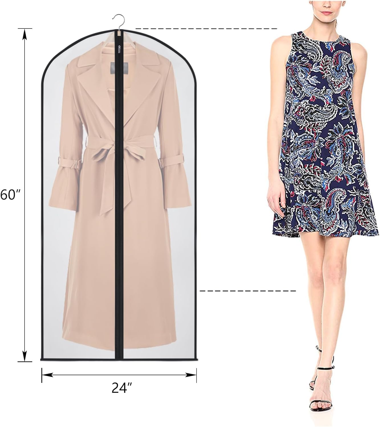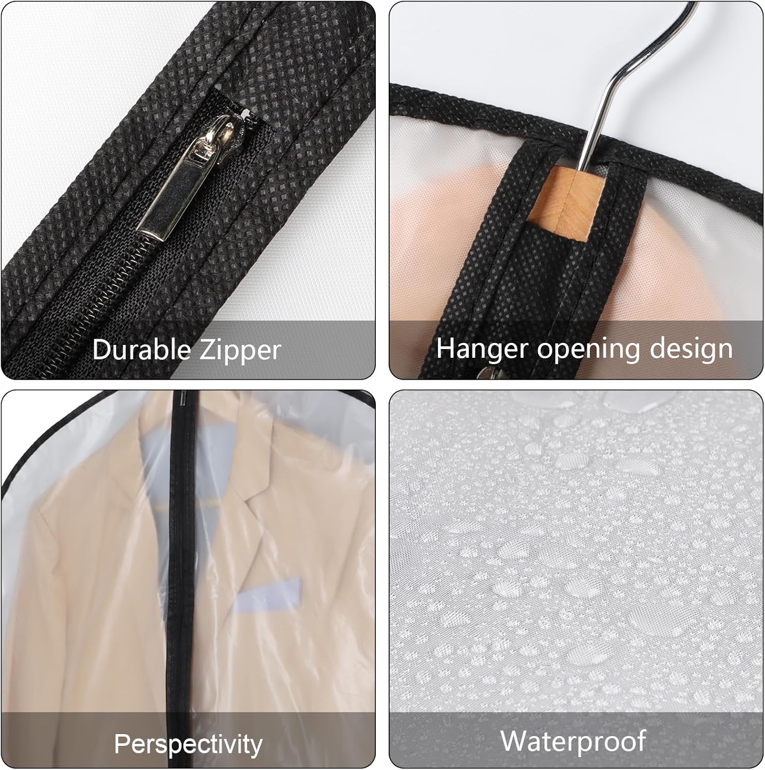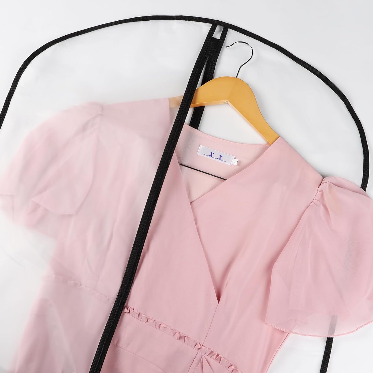 - 【High Quality Fabric Garment Bag 】The Clear garment bags with Black Edges are Made of soft PEVA material, Dust and water resistant, every suit and dress has a garment protective cover and breathing space, keep your clothes away from dust, wrinkle free and hair. The clear garment bags for storage easily Keeps your favarite or off season clothes cashmere fresh and clean