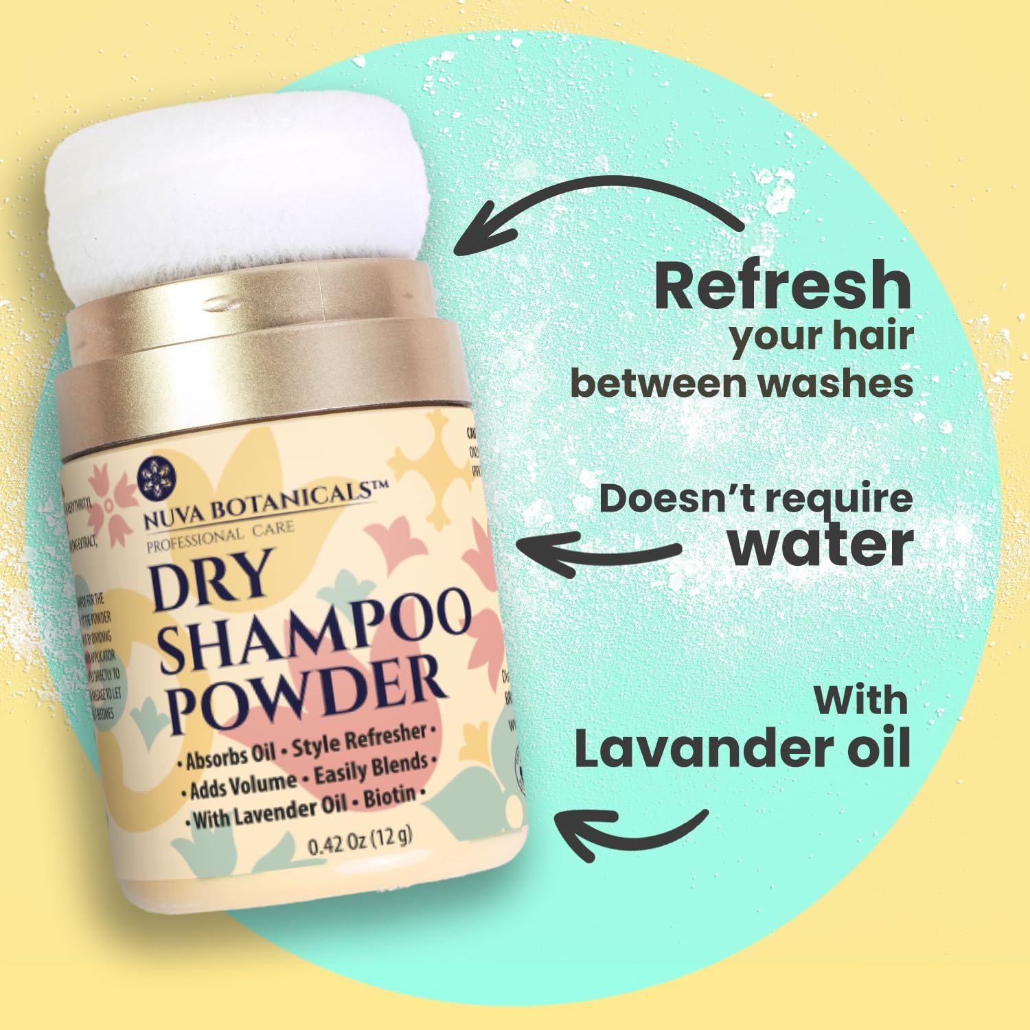 Non Aerosol Dry Shampoo Powder with Biotin - Lavender Extract and Korean Ginseng - Volumizing Travel Size (0.42 oz) - Gifts for Her