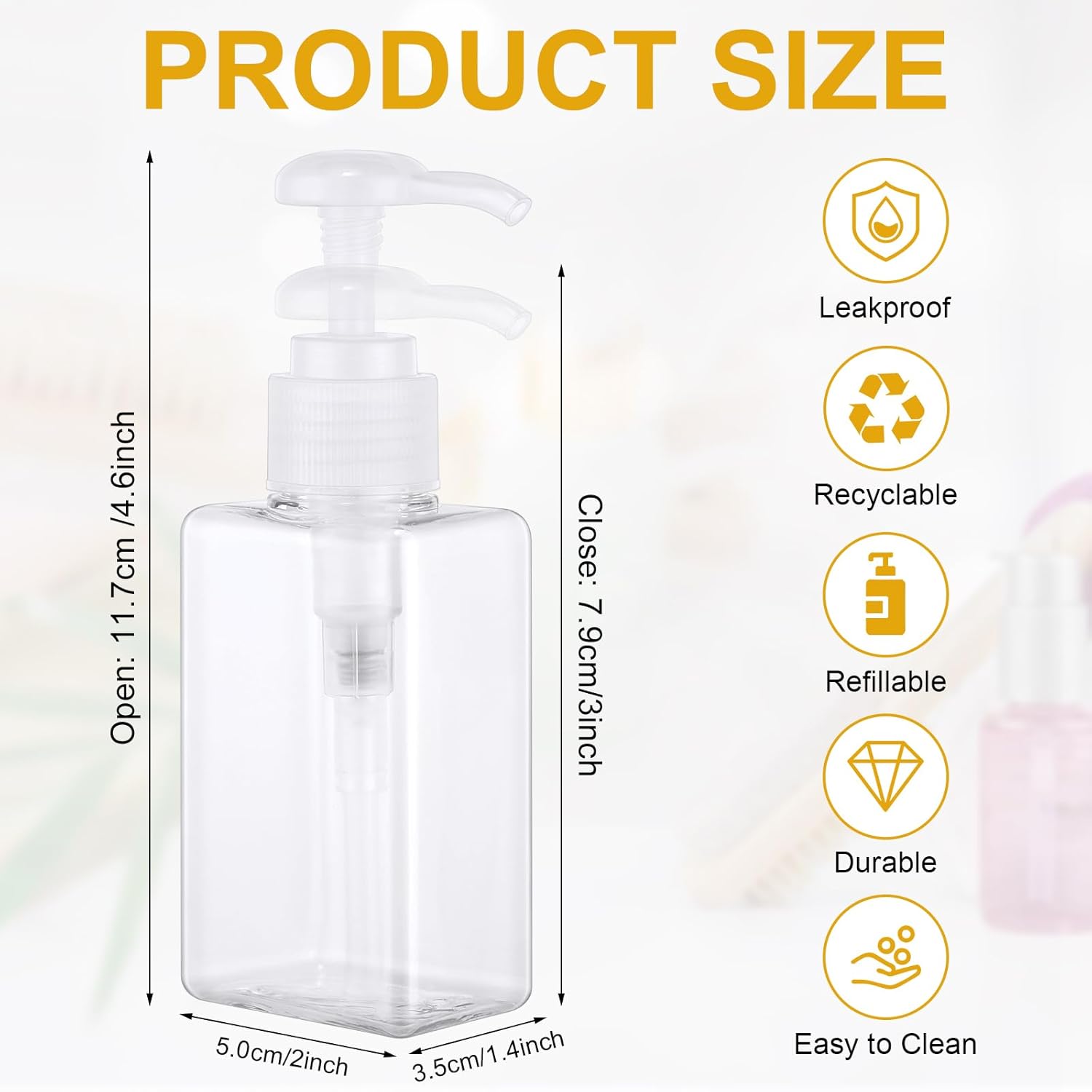 - Package Includes: each package includes 50 pcs travel bottles for toiletries, these clear empty pump bottles have a capacity of about 3.4 oz/100ml and measure about 2 inches/50mm*1.4 inches/ 35 mm in bottom; About 4.6 inches/ 117 mm in bottle height, lightweight and portable, ideal choice for camping or travelling