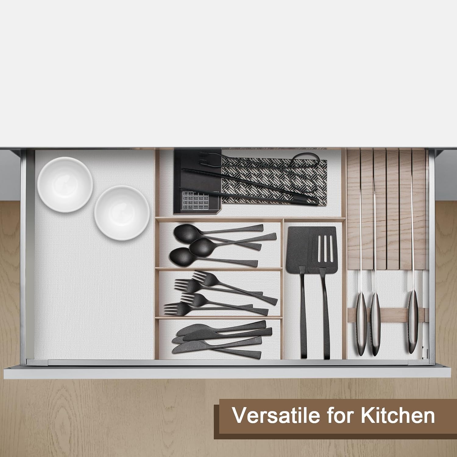 - 【NON-SLIP STRONG GRIP】Drawer liner is designed with double-sided non-slip design. Effectively prevent dishes and other fragile items in drawers and cabinets from shifting and sliding; The bottom mesh design can firmly grip the drawer or cabinet surface to prevent wrinkles.