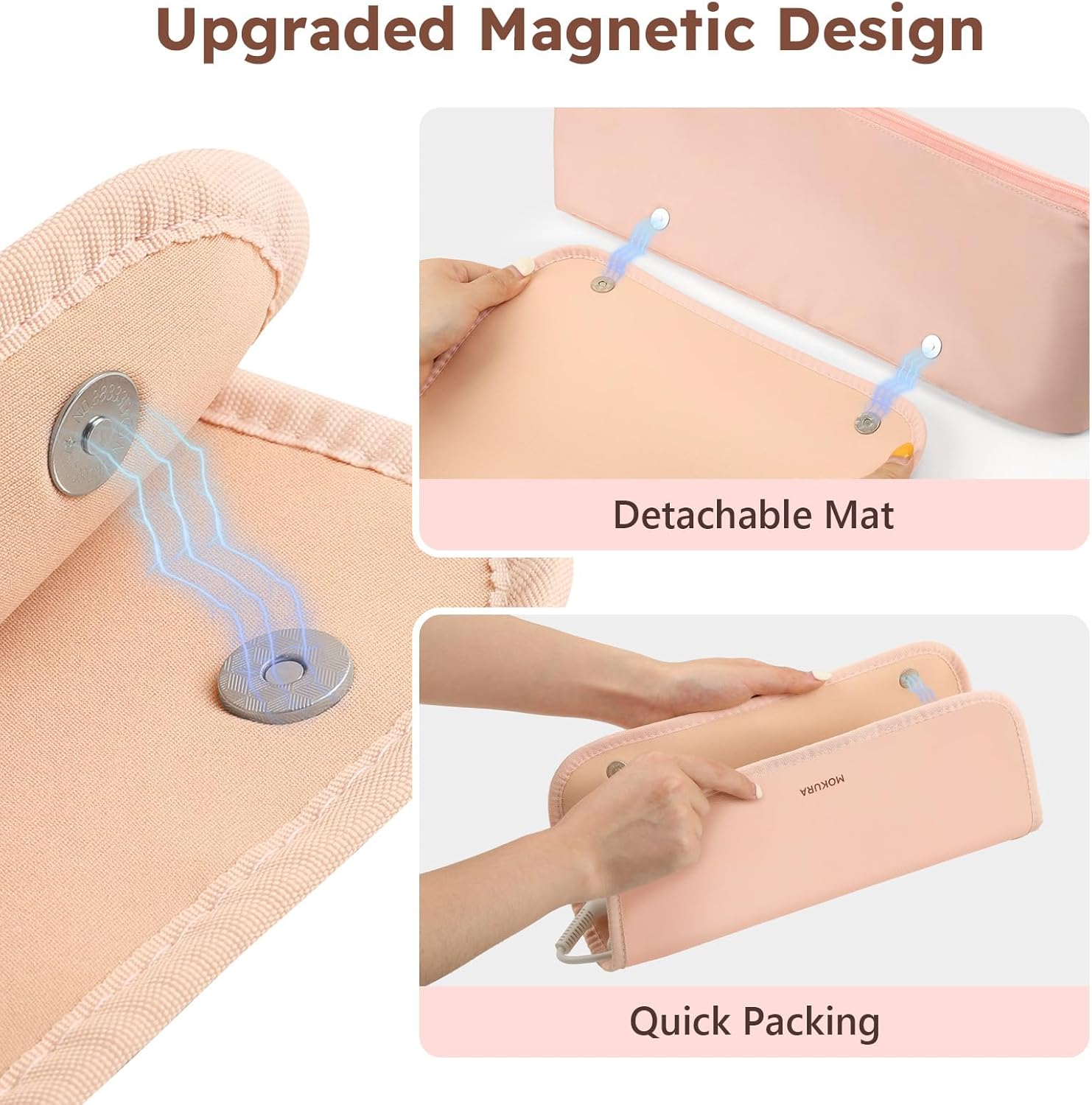 - Magnetic Detachable: The thermal hair tool travel bag comes with magnetic snaps, which are easy to disassemble for separate use. After the hairstyle, remove the heat pad, pack the hot tool, and put it in the bag. No cooling wait and saving your time.
