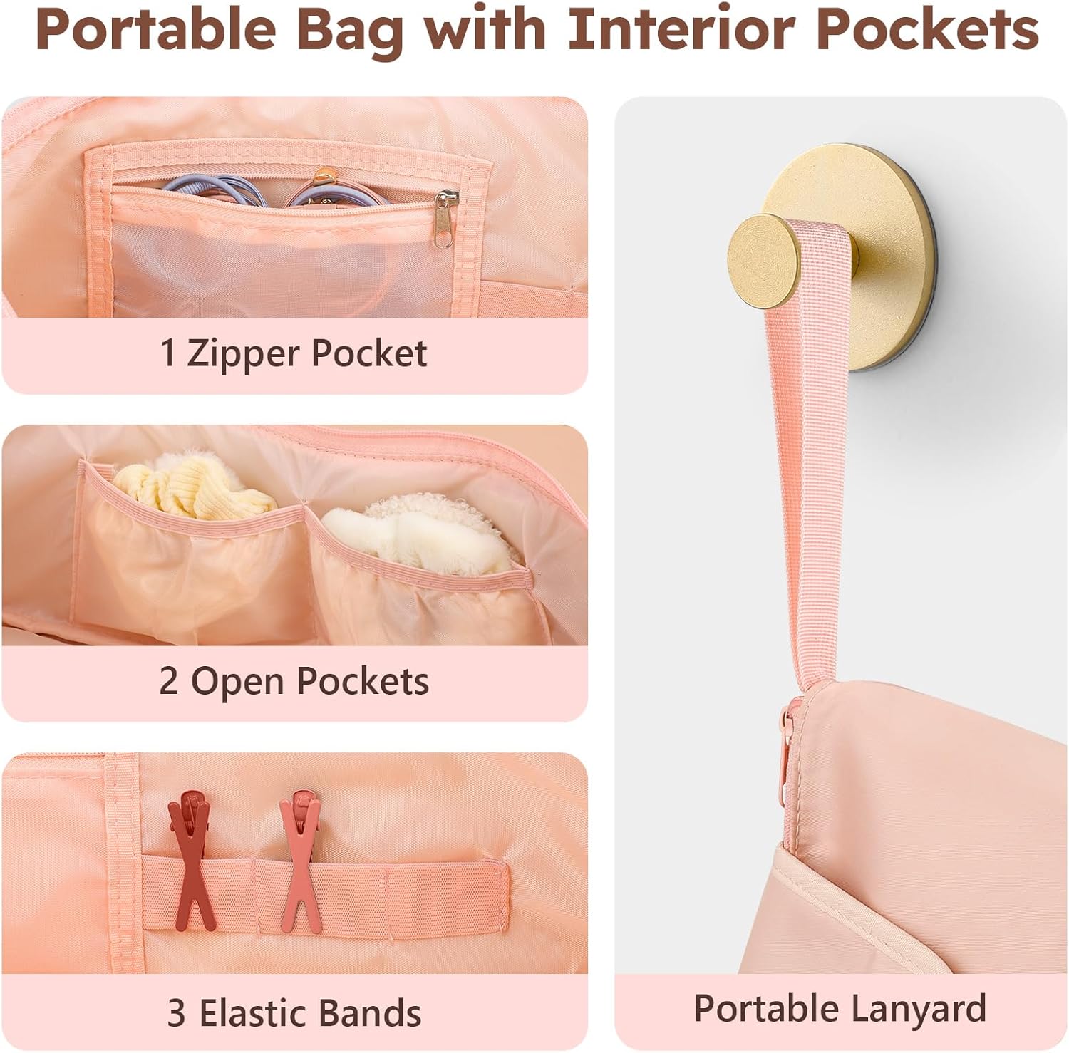 - Keep Organized: The hair stuff organizer has 1 zip pocket, 2 open pockets, and 3 elastic bands to store your hair ties, clips, small items, and other hair styling tools. Avoid tangles and clutter on your hair tools and make essentials easier to find.
