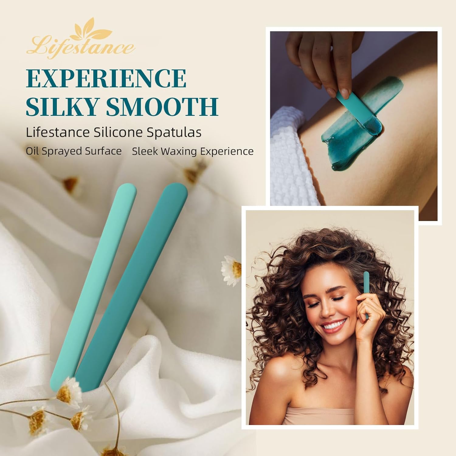 Lifestance Removable Silicone Wax Pot Liner with 2 Spatulas for 16oz Waxing Kit, Total 17 Items, Anti-Scalding Foldable Silicone Wax Warmer Bowl & Reusable Sticks, Easy to Clean