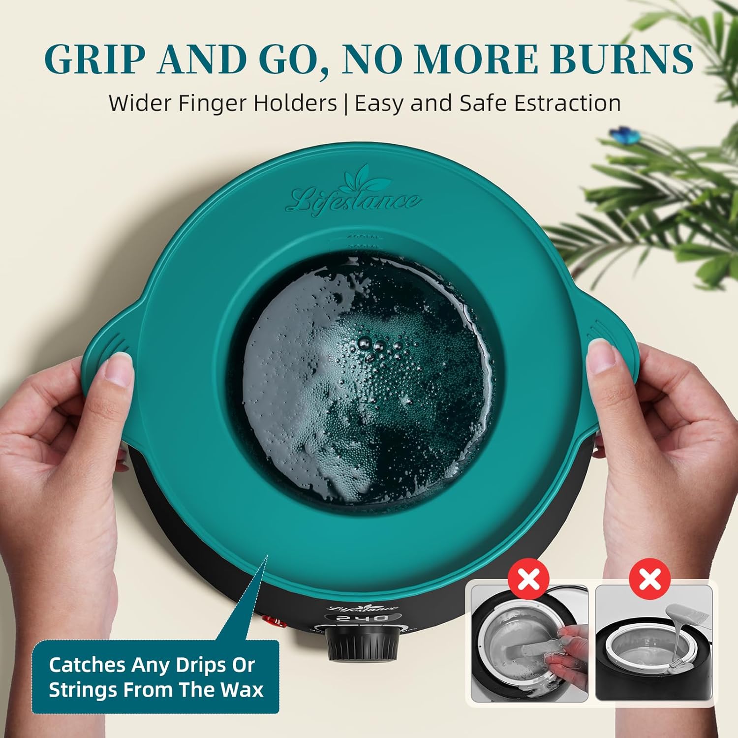 - Anti-Splash & Anti-Burn Design: The silicone wax warmer liner has a 3CM widened edge to fully wrap around the wax heater, effectively preventing wax from spilling or dripping onto the heater. It keeps the heater exterior clean and residue-less. Additionally, the wax pot liner features large anti-burn handles, which increase grip area and reduce the risk of burns compared to other models. This design makes the waxing process safer, more stable, and easier.