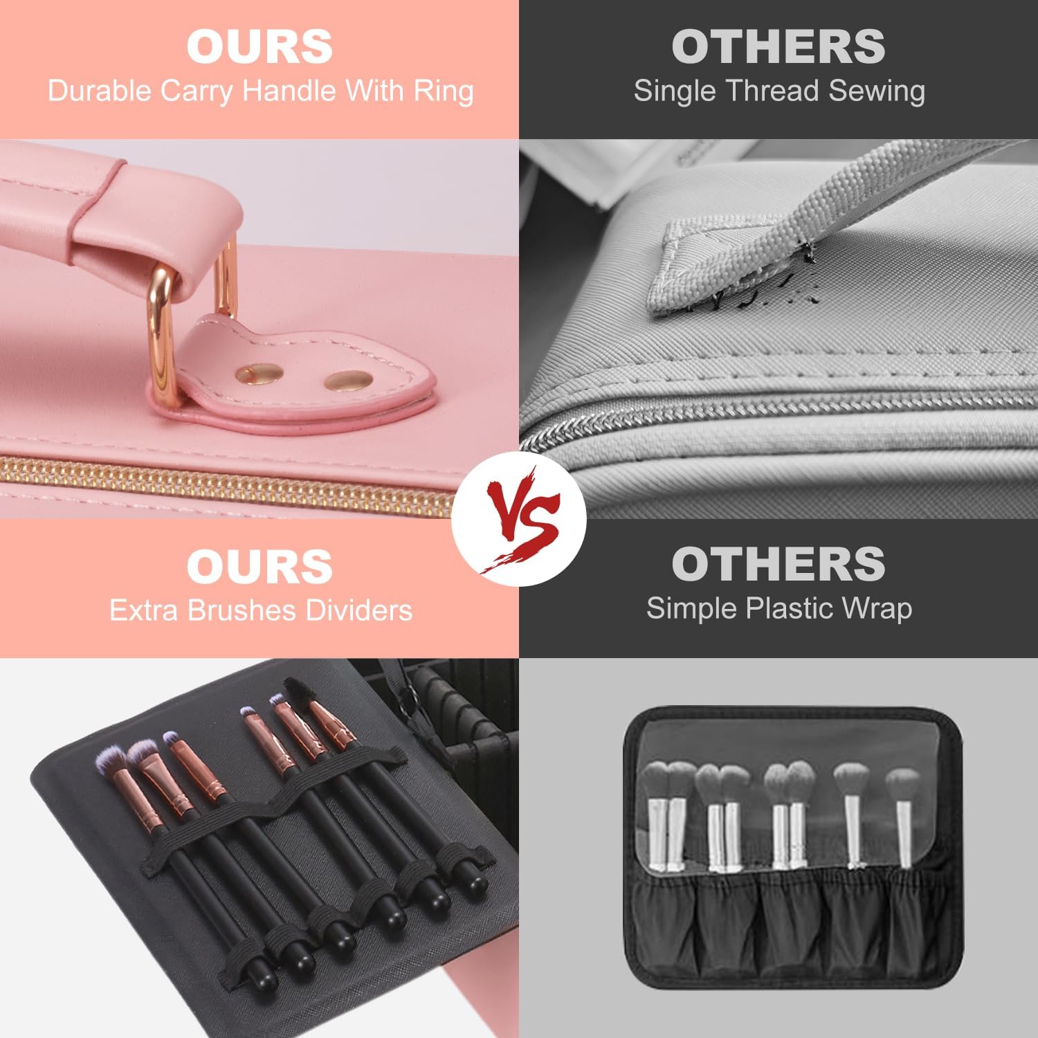 - Flexible and Large Storage Space:Reasonable design makes the makeup bag easy to carry, not only can you store cosmetics and makeup tools, but also jewelry, electronic accessories, camera accessories, toiletries, etc. Removable EVA sponge divider Can DIY the space you need to meet your needs. Can accommodate a variety of sizes of cosmetics and makeup brushes. Which can well protect the cosmetics inside, ensure no breakage or leakage, and also keep them clean and dry.