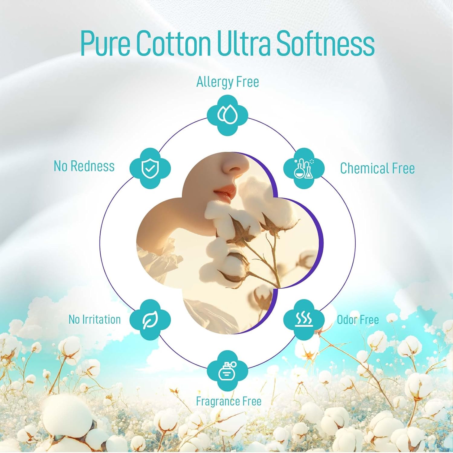 Luxuriously Soft Disposable Face Towel, 100% Cotton, Extra Large 12" x 10" Ultra Soft Dry Wipe for Face Wash, Makeup Remover, Bio-Based Towelette for Sensitive Skin 80 Count (1 Pack)