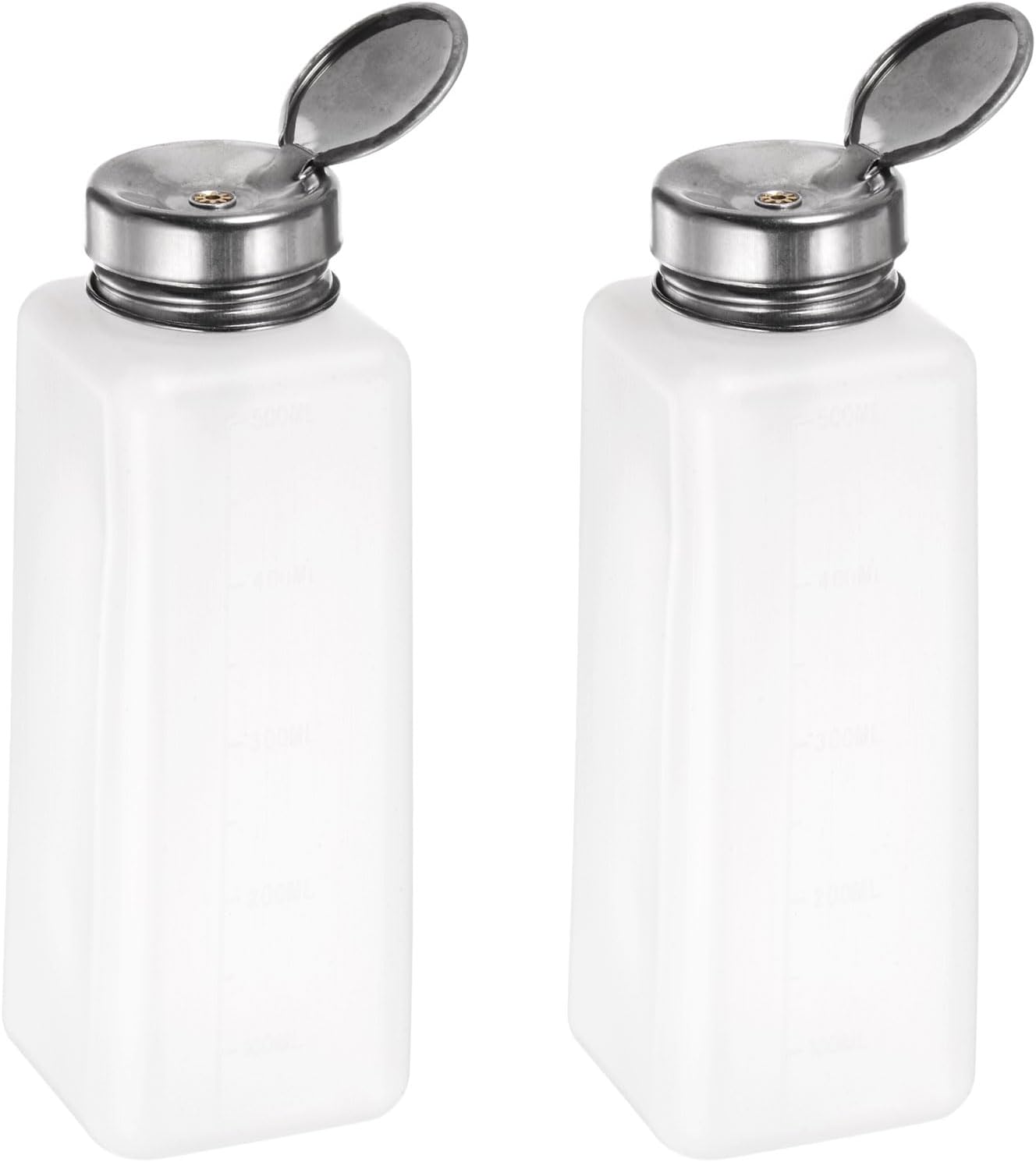 uxcell 2 Pcs Alcohol Liquid Press Pumping Dispenser 500ML Nail Polish Remover Empty Bottle White