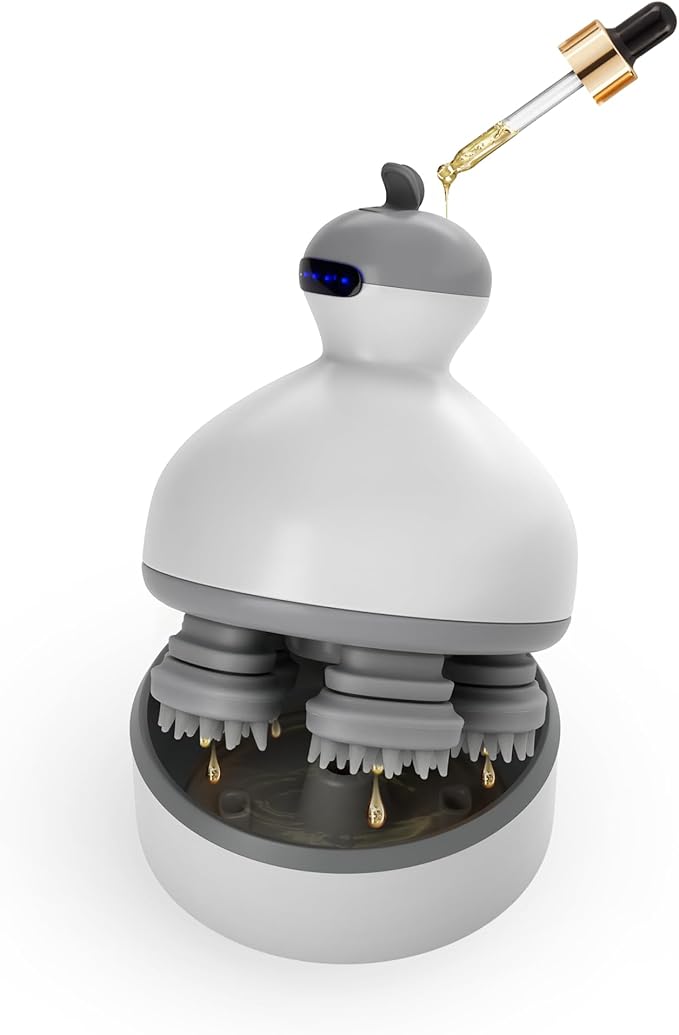 Electric Scalp Massager | 4-Mode Oil-Infused Head Massager with Oil Compartment | Promotes Hair Growth & Scalp Health | Removable Food Grade Silicone Heads