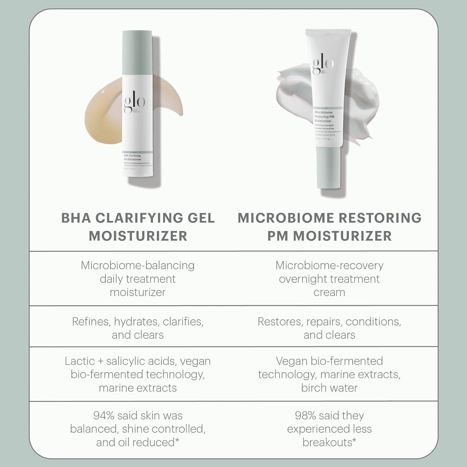- BHA CLARIFYING GEL MOISTURIZER - Infused with a microbiome-balancing complex, salicylic acid, and marine actives, our clarifying moisturizer works tirelessly during the day to refine, smooth, and clear your skin.