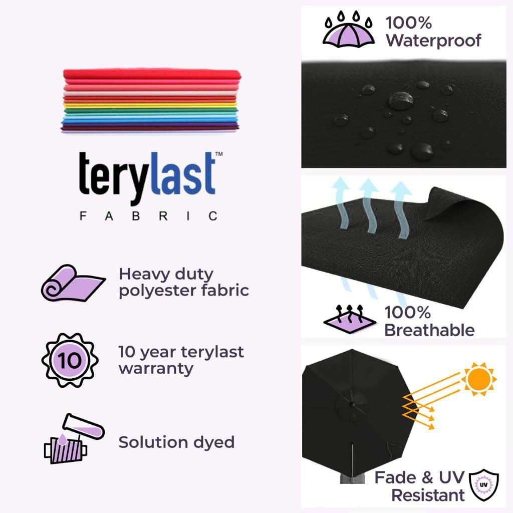 - [ WARRANTY ]: 10 year warranty on the Midtown 10 ft umbrella outdoor patio frame along with 10 year warranty on the Terylast fabric.