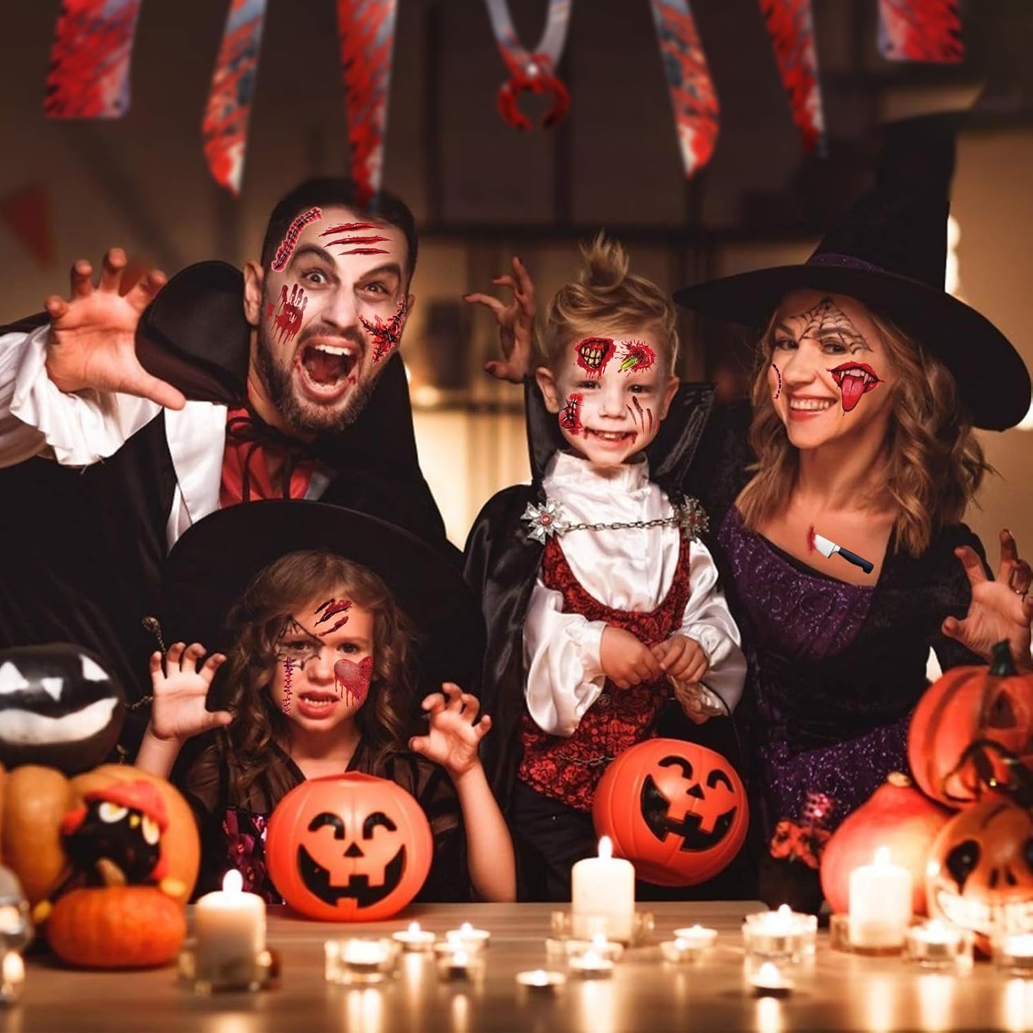 - Versatile & Creative: Unleash your creativity with these versatile temporary tattoos. Whether aiming for a gory fake blood effect or intricate Halloween makeup, the tattoos offer endless possibilities for creative expression. Mix and match with colored contacts, Halloween stickers, and Halloween face tattoos for a unique and personalized look.