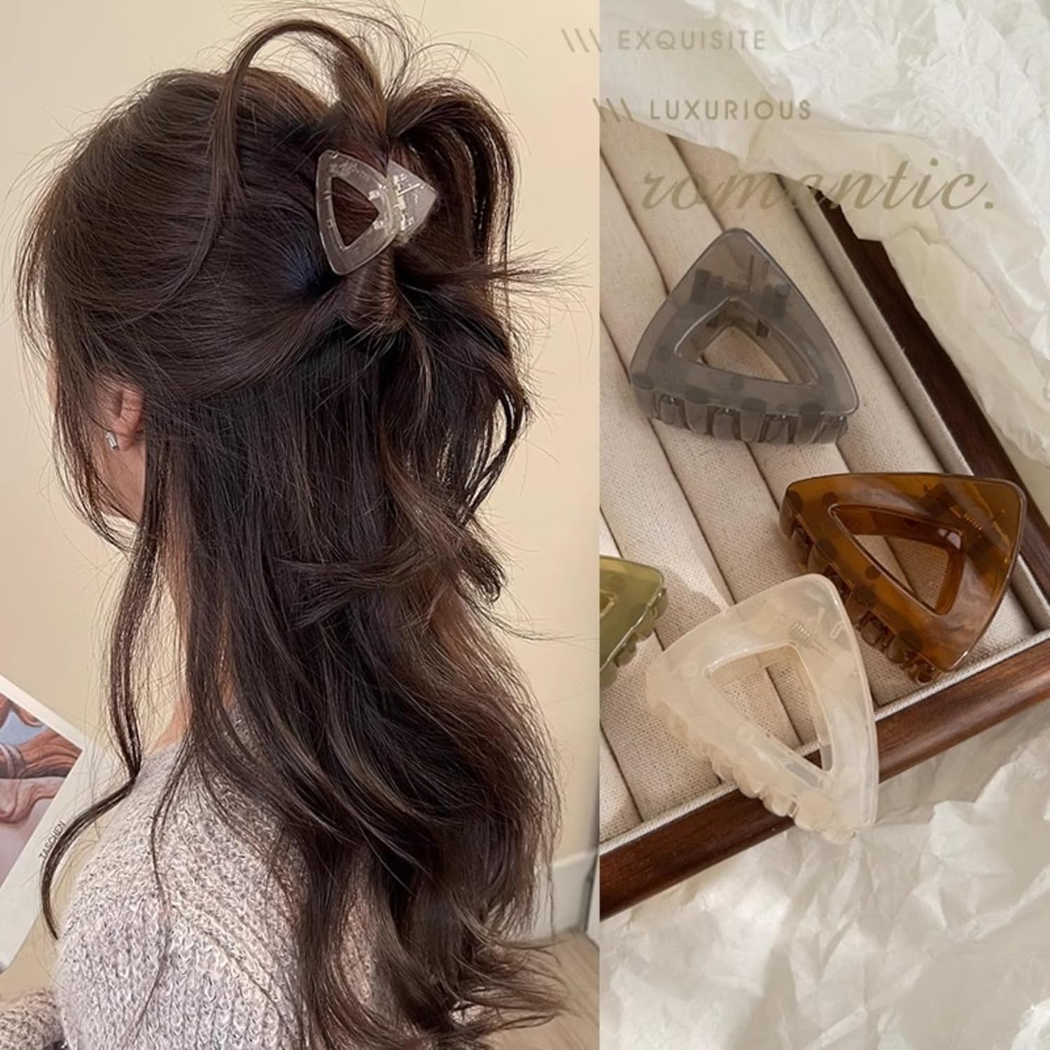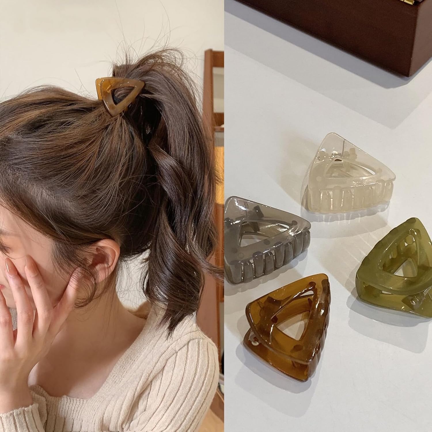 Generic Medium Small Triangle Claw Clips for Women Girls, Four Color 1.6 Inch Hair Styling Accessories for Long, Short, Thick and Thin Hair, (4 PACK), Green, Gray, Brown, Cream