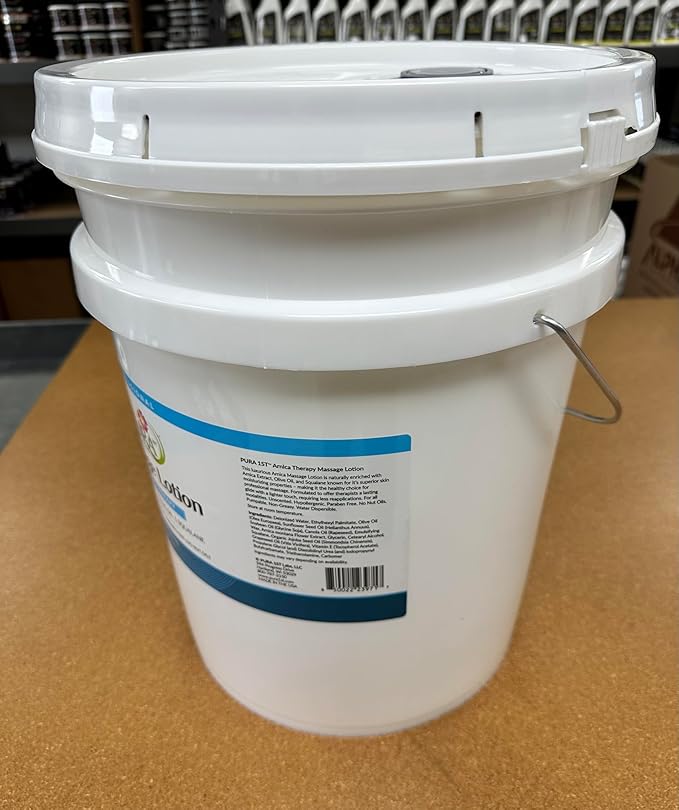 5 Gallon Arnica Massage Lotion, Hypoallergenic Formula for Muscle Relief, Unscented Deep Tissue for Physical Therapy, Natural, Recovery, Skin Hydrating, Moisturizing, Long Lasting