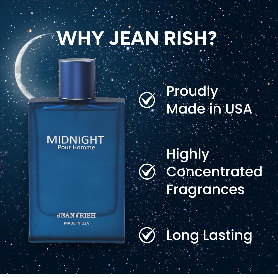 Jean Rish Midnight Pour Homme Eau De Toilette for Men (3.4 Fl Oz / 100ml) with Bergamot, Lavender & Patchouli - Long Lasting and Luxury Fragrance, Made in USA