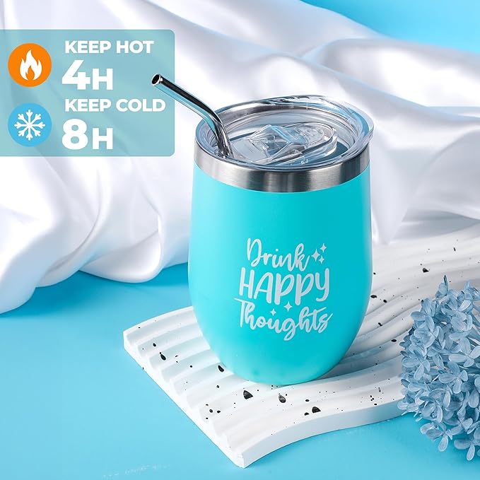 - ๐ SIP & SAVOR MOMENTS OF CALM: This womenโs gift set includes a 12oz insulated tumbler that keeps your drink at the perfect temperature, whether youโre winding down with tea or celebrating with wine, or even energizing with a coffee. The "Drink Happy Thought" print on tumblr will make sure she knows how much you care and acts as a great relaxation gifts for women.