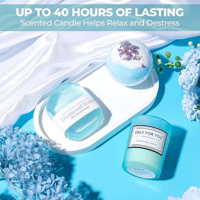 - ๐ธ UNWIND IN STYLE: A soft blanket, cozy socks, and aromatic candles ensure that relaxation comes easy and feels indulgent with our spa day essentials. These items are hand picked to ensure the best and most relaxing home self care spa experience, something every woman would love and appreciate. Our bath sets for women are an amazing gift for any occasion.