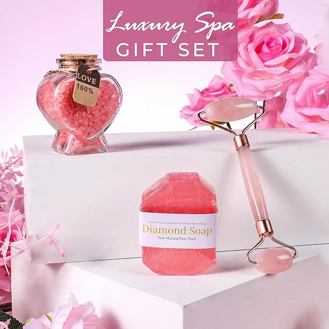 - ๐ PAMPER IN EVERY SENSE: Indulge in calming bath salts, luxurious handmade soap, and a fizzy bath bombโthis self care package for women is your ticket to the ultimate cozy night (or day) in. When it is time to rest, our plush blanket and jade roller are perfect for a cozy calming rest. Our self care kit ensures complete relaxation.