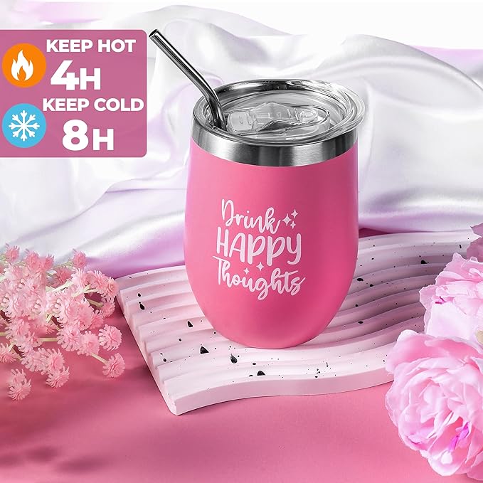 - ๐ SIP & SAVOR MOMENTS OFC CALM: This womenโs gift set includes a 12oz insulated tumbler that keeps your drink at the perfect temperature, whether youโre winding down with tea or celebrating with wine, or even energizing with a coffee. The "Drink Happy Thought" print on tumblr will make sure she knows how much you care and acts as a great relaxation gifts for women.
