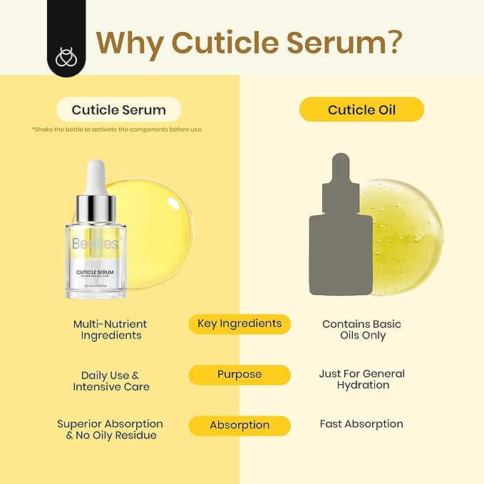• Groundbreaking Water-Oil Fusion for Face-Level Nourishment: Presenting BT's groundbreaking face-level nourishing serum tailored for nails, our Cuticle Serum integrates hydration, nourishment, and moisture in one revolutionary formula. It offers a spa-inspired pampering session for your nails, resulting in soft, smooth, and healthy nails.