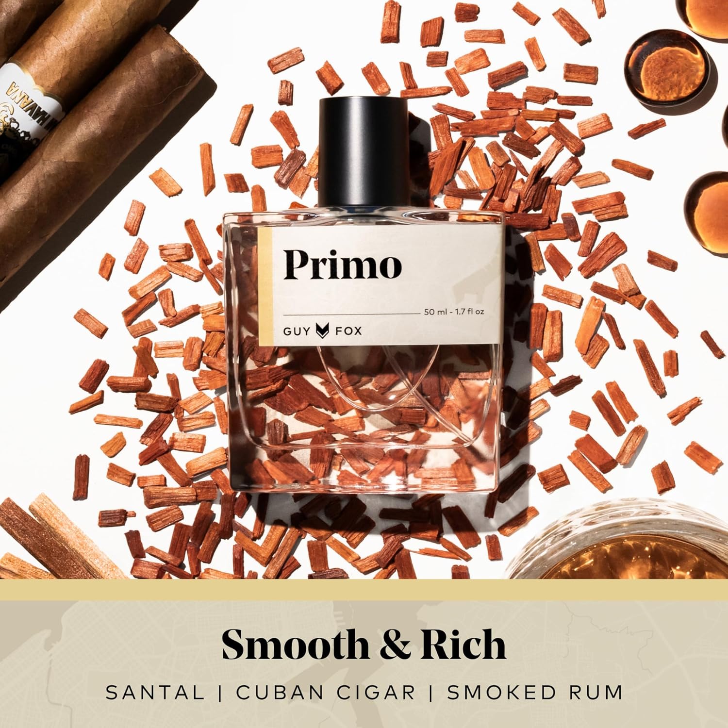 GUY FOX - Primo - Cologne For Men | Santal, Cuban Cigar, Smoked Rum | Smooth, Rich Men's Cologne | Men's Fragrance | 1.7 Fl Oz