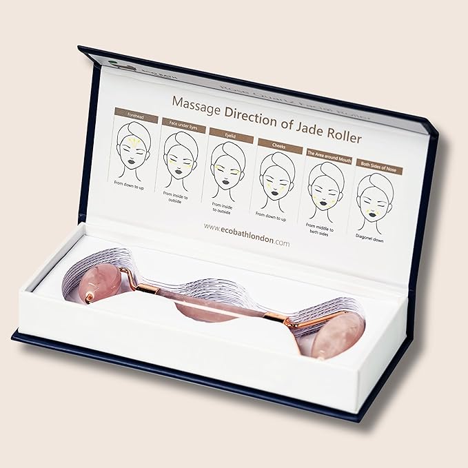 - PREMIUM ROSE QUARTZ AND JADE: Crafted from natural rose quartz and jade, this face roller provides a luxurious and soothing facial massage experience.