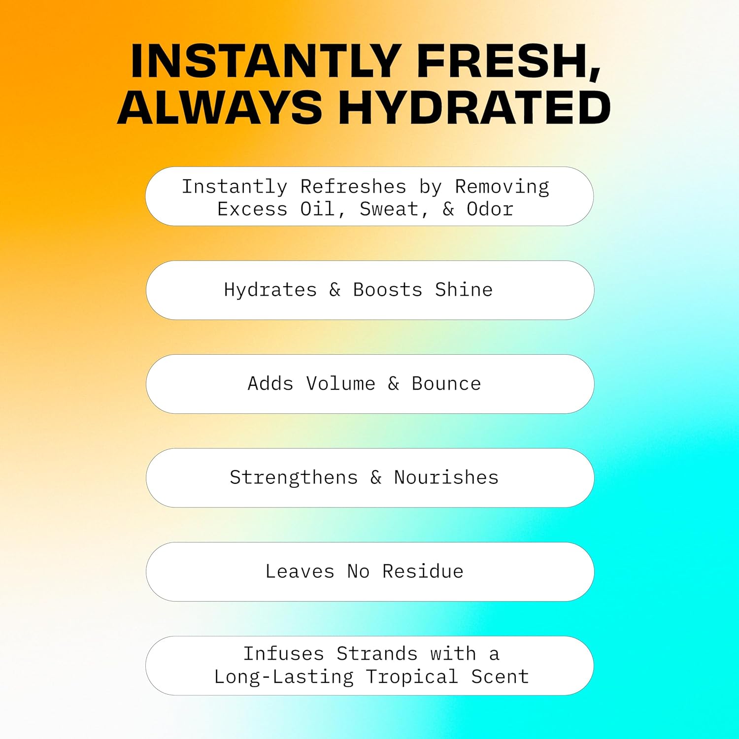 - Beachy-Coconut Scent: Enjoy a tropical escape with every spray. Infused with an irresistible coconut & mango fragrance, this dry shampoo leaves hair smelling fresh. Perfect for a just-washed feel with no water needed, even after workouts or travel.