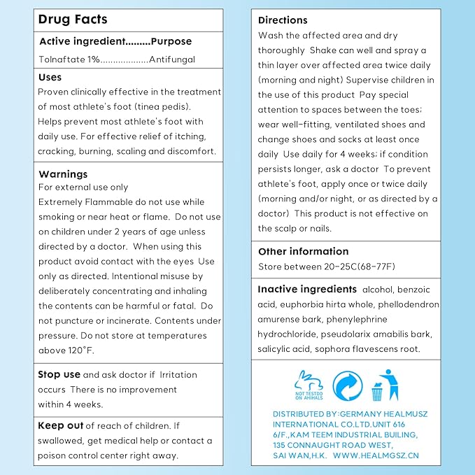 - Easy to Use: Convenient and effortless to apply, simply spray onto the affected areas and let it air dry. Our athlete's foot spray provides long-lasting care and pleasant freshness, recommended for daily use twice a day.
