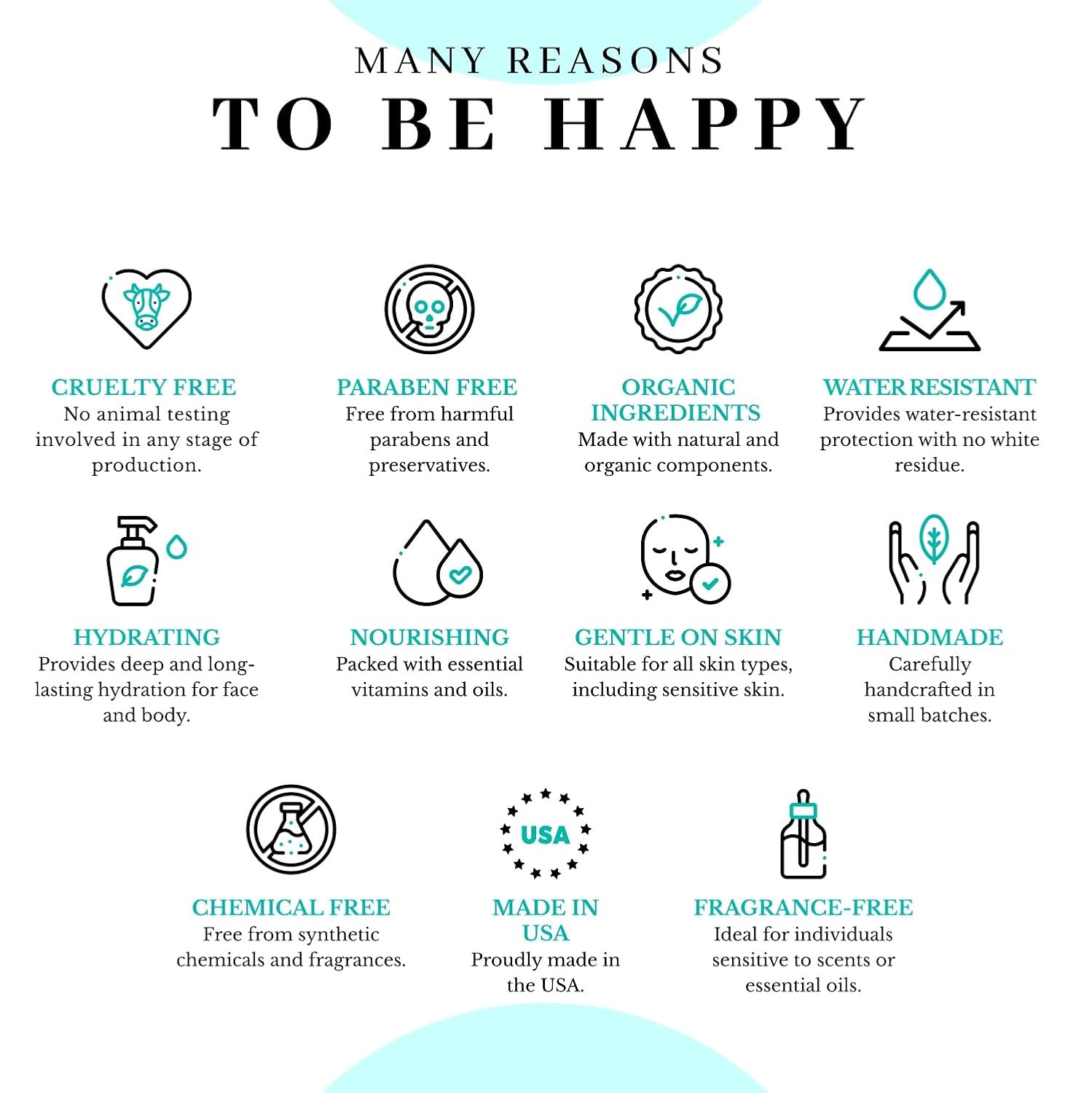 - Lasting Protection: An SPF equivalent of about 20, this body and facial sunscreen is water-resistant and will leave no white residue. Instead of chemically changing your skin to not burn, VanMan’s body sunscreen uses non-nano Zinc Oxide and 100% edible ingredients to act as a mineral barrier.