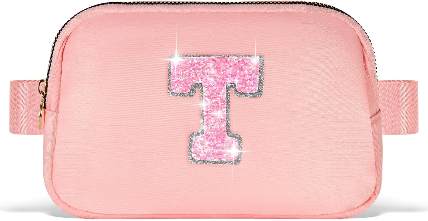 Gifts for Girls & Kids - Birthday Gifts for Daughter & Sister, Essentials for Her, Travel Essentials, Cute Teen Trendy Stuff Waist Packs Belt Bag Crossbody Bag | Peach, Initial T